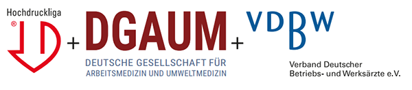 Die Deutsche Hoch­druck­liga und der Verband Deutscher Betriebs- und Werks­ärzte (VDBW) kooperieren bereits erfolgreich, um die Prävention und Früh­erkennung von Blut­hoch­druck gezielt in der Arbeits­welt zu stärken. Im Setting Betrieb können so Millionen Menschen direkt erreicht werden. Ziel der Zusammen­arbeit ist es, arbeits­medizinische Expertise und wissen­schaftliche Erkennt­nisse enger zu verzahnen und damit das Setting Betrieb wirksam für Aufklärung, Prävention und Früh­erkennung von Blut­hoch­druck zu nutzen. Hier werden z. B. im Rahmen der arbeits­medizinischen Vorsorge auch Menschen erreicht, die sich noch gesund fühlen oder Arzt­besuche gar nicht oder eher selten wahr­nehmen, eine große Chance für die Früh­erkennung bisher unbemerkt erhöhter Blut­druck­werte und weiterer kardio­vaskulärer Risiko­faktoren.